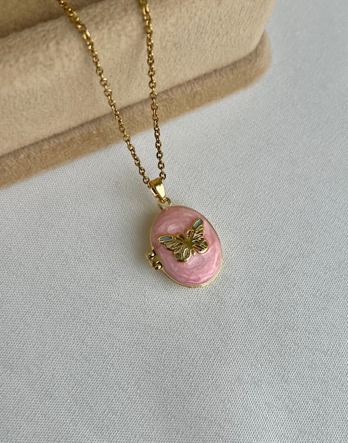 گردنبند لاکت میناکاری پروانه صورتی