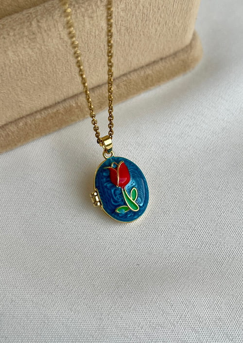 گردنبند لاکت میناکاری لاله قرمز