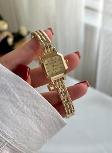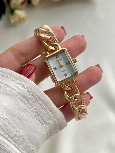 ساعت فنسی مربع طلایی