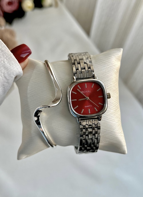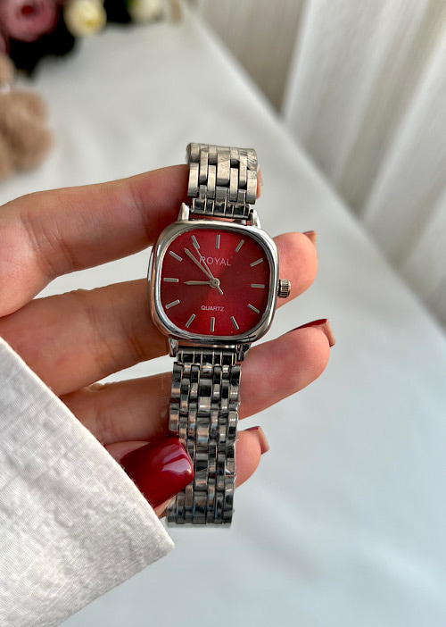 ساعت رویال نقره ای زرشکی