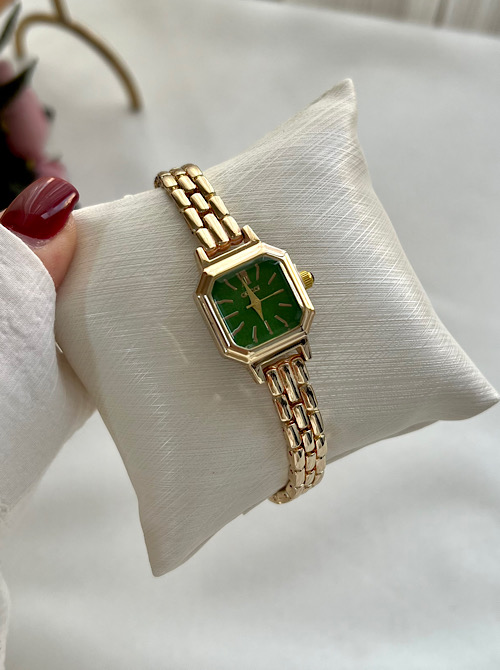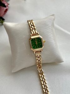 ساعت فنسی مربع سبزطلایی
