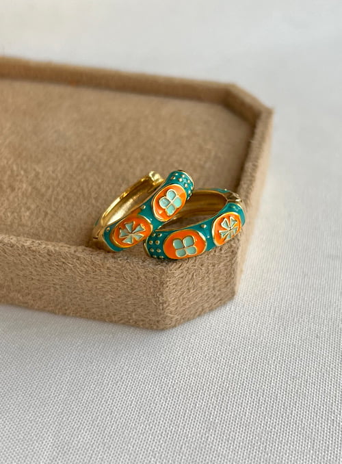 گوشواره میناکاری سبز نارنجی