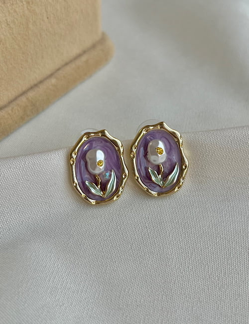 گوشواره میناکاری مدورا بنفش