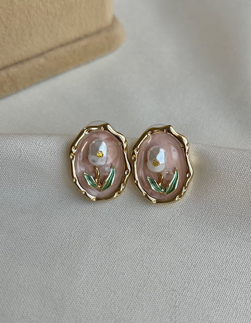 گوشواره میناکاری صورتی