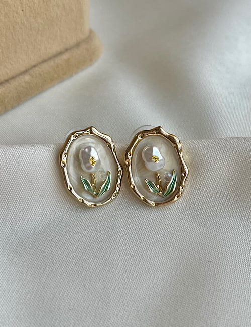 گوشواره گل صدفی و مروارید