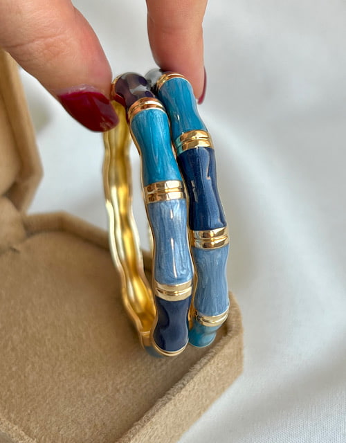 دستبند میناکاری بامبو آبی سرمهای
