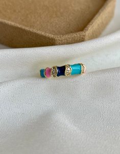 یه انگشتر شیک و رنگی با ترکیبی جذاب از آبی، سرمهای و صورتی 💙💖