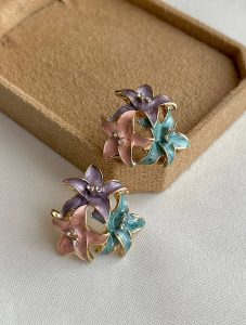 گوشواره میناکاری سه گل رنگی۰۲