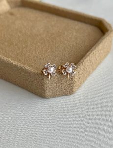 یه مدل لطیف و دخترونه با طرح شکوفه و نگینهای ریز براق که روی گوش فوقالعاده میدرخشه 🌸✨