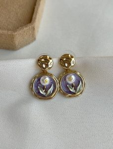 گوشواره میناکاری فلاور بنفش