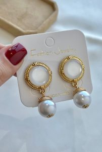 پلاک صدفی آبی با مروارید ظریف و نگینهای درخشان 🤍💫