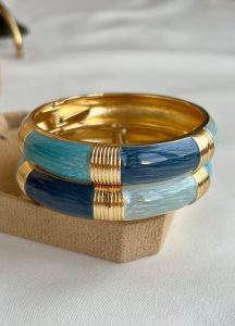 🌊💛 دستبند میناکاری با ترکیب رویایی آبی و طلایی