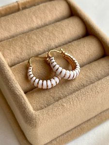✨ گوشواره میناکاری سفید ـ طلایی ✨