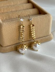 یه مدل خوشگل و چشمگیر با آویزهای پولکی براق و مرواریدهای ظریف 🤍✨