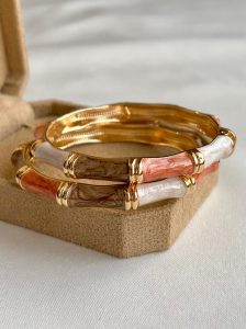 🧡 دستبند میناکاری طرح بامبو با ترکیب رنگی آجری و قهوهای ✨