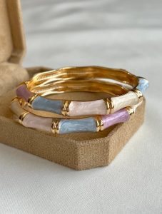 💙🤍 دستبند میناکاری طرح بامبو با رنگ ترکیبی شیری و آبی ✨