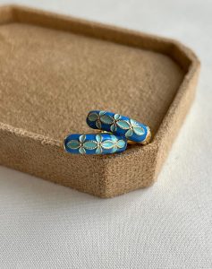 💙 این گوشوارههای میناکاری گلدار با زمینهی فیروزهای و طرح ظریف طلایی، انتخابی لطیف و شیک برای استایل روزمره یا مهمونیان 🤩