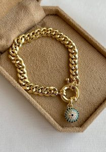 دستبند زنجیری با قفل تی از برند ژوپینگ دقیقا مشابه نمونه طلا با آبکاری طلا ۱۸ عیار