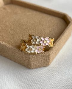 🌸 گوشواره میناکاری شکوفه گلبهی ـ کرم 🤍