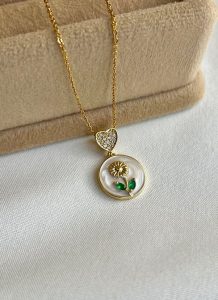 با آبکاری طلا ۱۸ عیار از برند ژوپینگ سایزبندی محصول ۷/۸/۹ نگین ها مخراجکاری شده و بدون ریزشگردنبندمیناکاری آفتابگردان