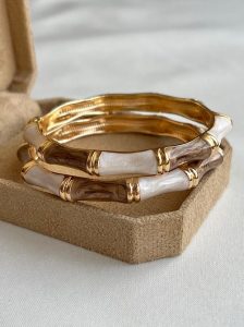 🤍 دستبند میناکاری طرح بامبو شیری قهوه ای ✨