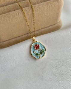 گردنبند میناکاری ابی رز قرمز