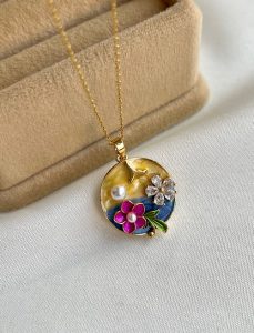 گردنبند «میناکاری مروارید گل نارنجی»؛