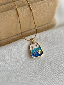 گردنبند «میناکاری مروارید گل نارنجی»؛