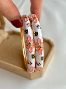 دستبند «میناکاری سفید صورتی گلدار»؛