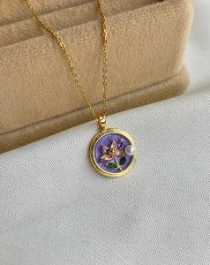 گردنبند «میناکاری مروارید گل نارنجی»؛