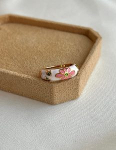 انگشتر «میناکاری صورتی گلدار»؛
