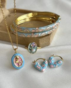 ست میناکاری آبی صورتی