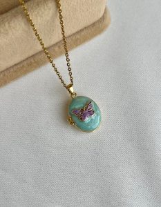 گردنبند لاکت میناکاری پروانه ابی