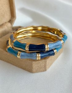 دستبند میناکاری بامبو آبی سرمهای