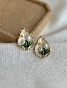 گوشواره میناکاری سبز نارنجی 🌿🧡