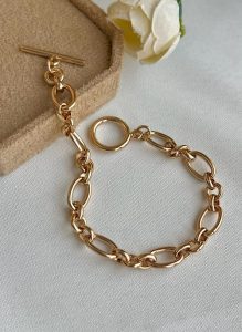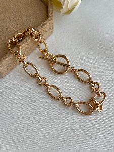 دستبند زنجیری با قفل تی از برند ژوپینگ دقیقا مشابه نمونه طلا با آبکاری طلا ۱۸ عیار