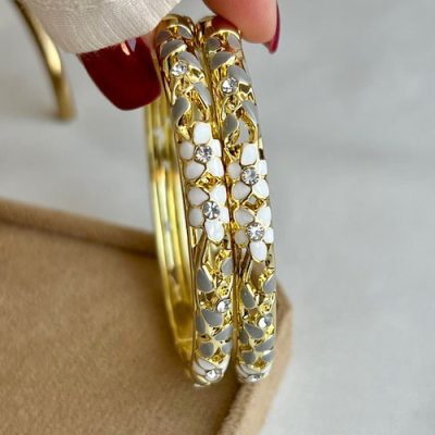 دستبند میناکاری فلاور سفید طوسی