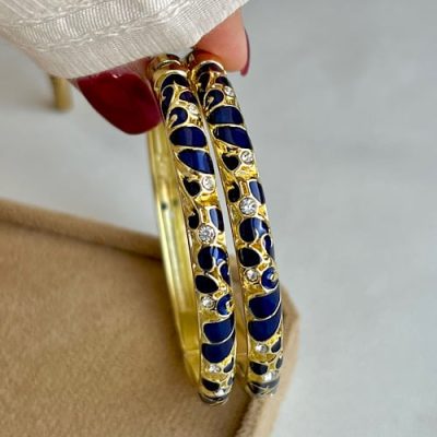 دستبند میناکاری فلاور سرمه ای✨