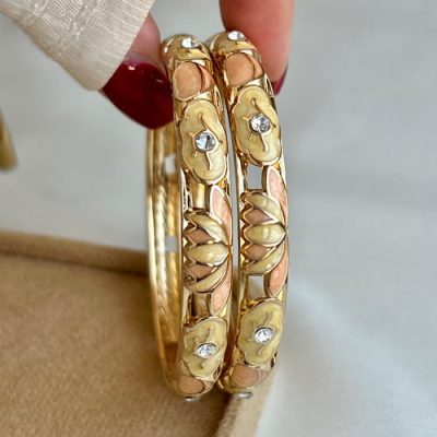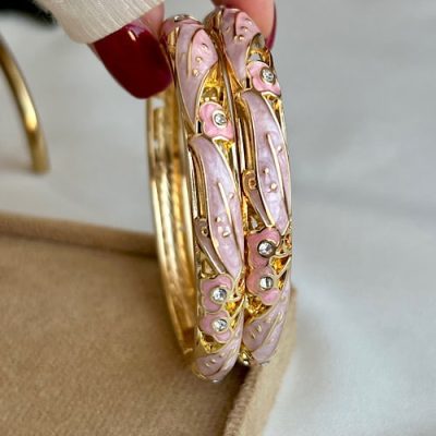 دستبند میناکاری شیری صورتی✨