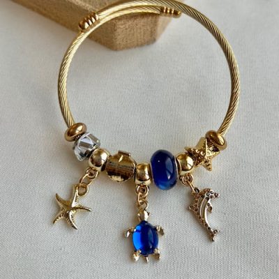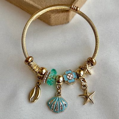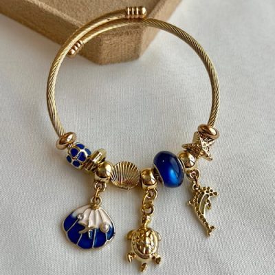 دستبند پاندورا طلایی طرح صدف ابی