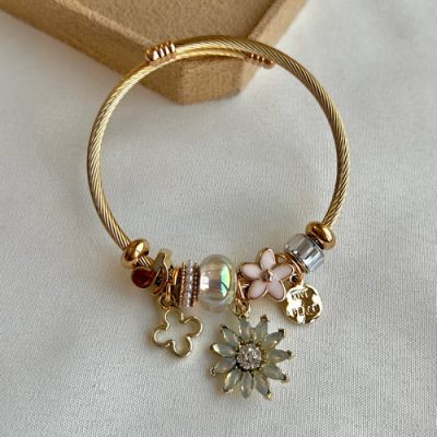 دستبند میناکاری فلاور شیری گلبهی
