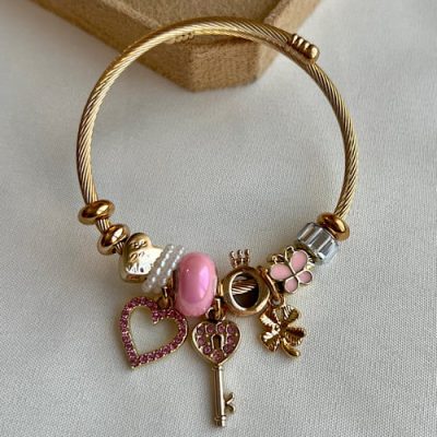 دستبند پاندورا طلایی طرح کلید