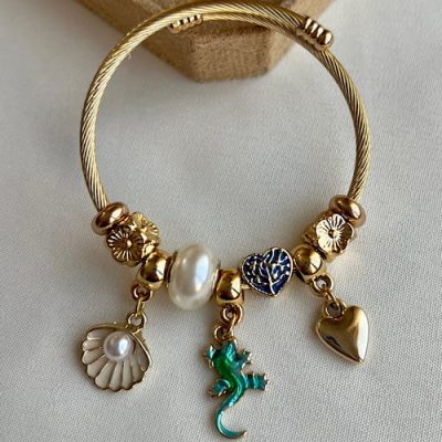 دستبند پاندورای طلایی طرح مارمولک ✨💛
