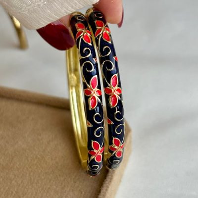 دستبند میناکاری گل دار سرمه ای