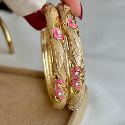 دستبند میناکاری کرم صورتی لنو