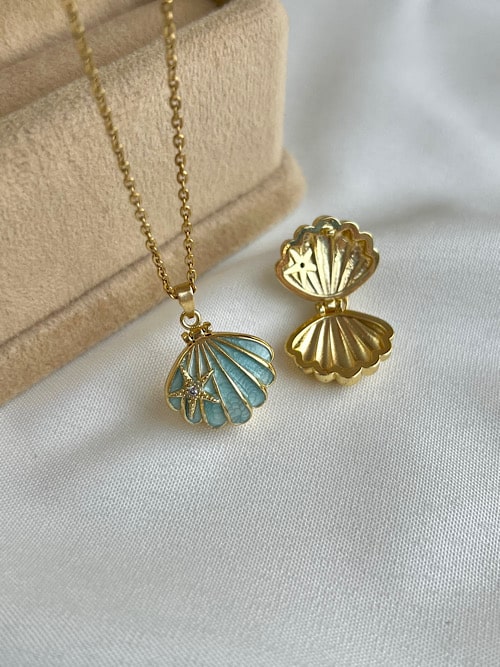 خانهبدلیجاتگردنبند گردنبند لاکت میناکاری صدف ابی