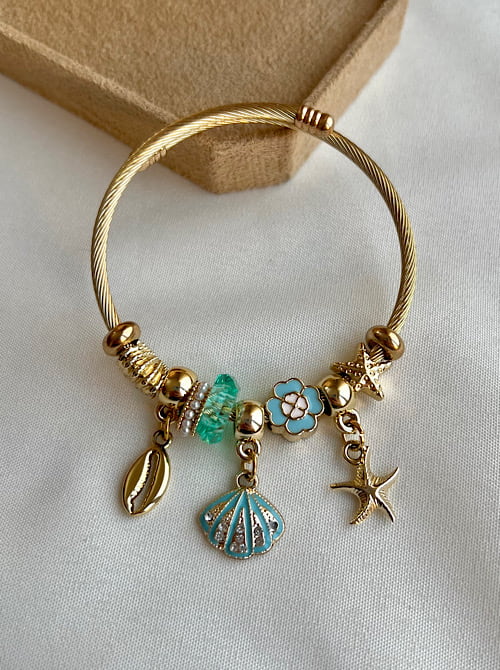 دستبند پاندورای طلایی طرح صدف ابی ✨💛