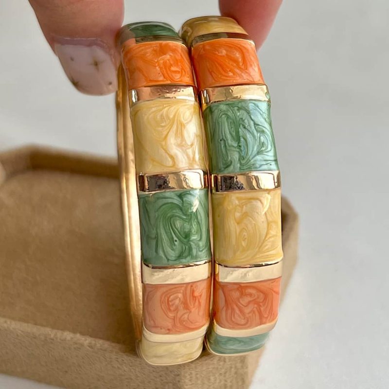 ✨ دستبند میناکاری خطی نارنجی، سبز و زرد