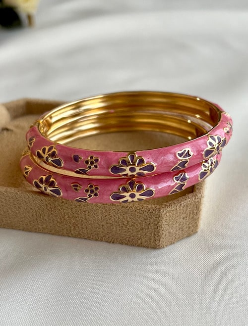 خانهبدلیجاتدستبند دستبندمیناکاری گلدارصورتی