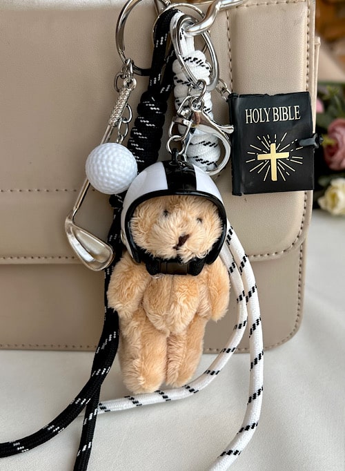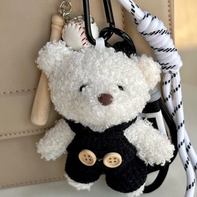 آویز کیف طرح تدی کلاه دار با جاکارتی سفید